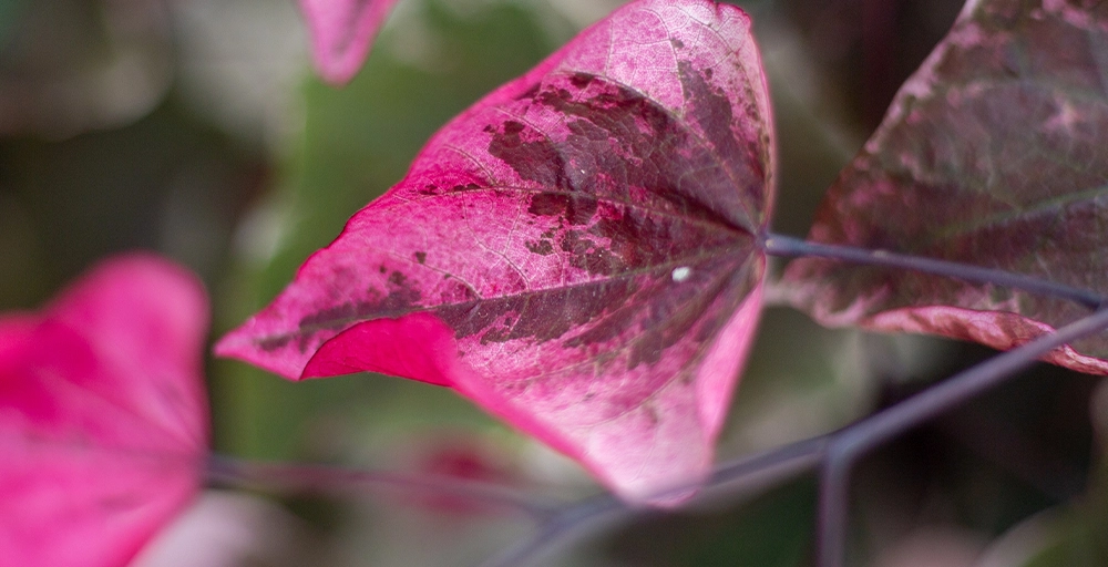 De Cercis canadensis 'Eternal Flame' staat bekend om zijn vurige bladeren. De bladeren van de Cercis canadensis zijn rood, oranje en geel. Ook bloeit de ‘Eternal Flame’ in het voorjaar met prachtige donkerroze bloemen.
