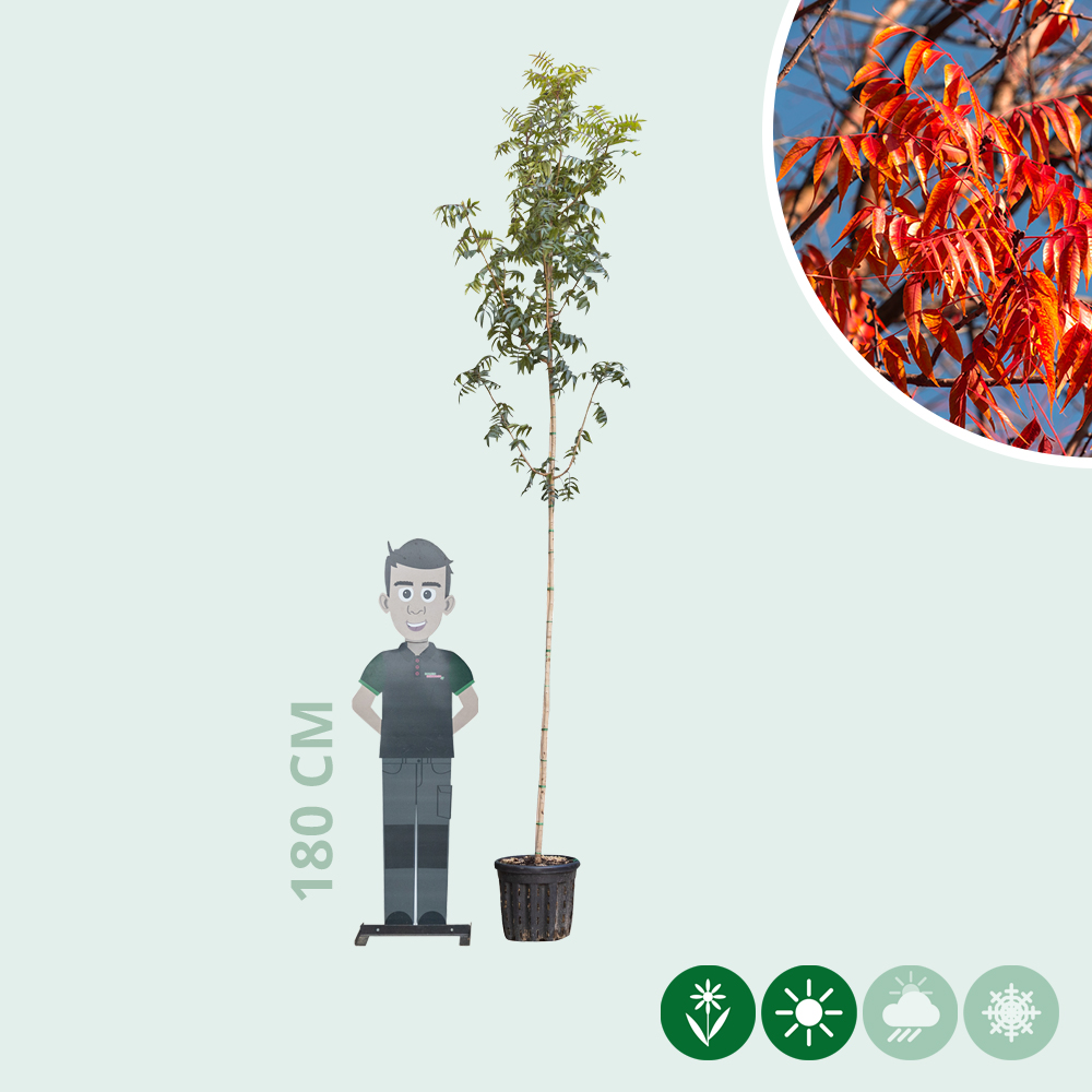 De Chinese Pistache hoogstam heeft een totaalhoogte van 250 tot 300 centimeter.