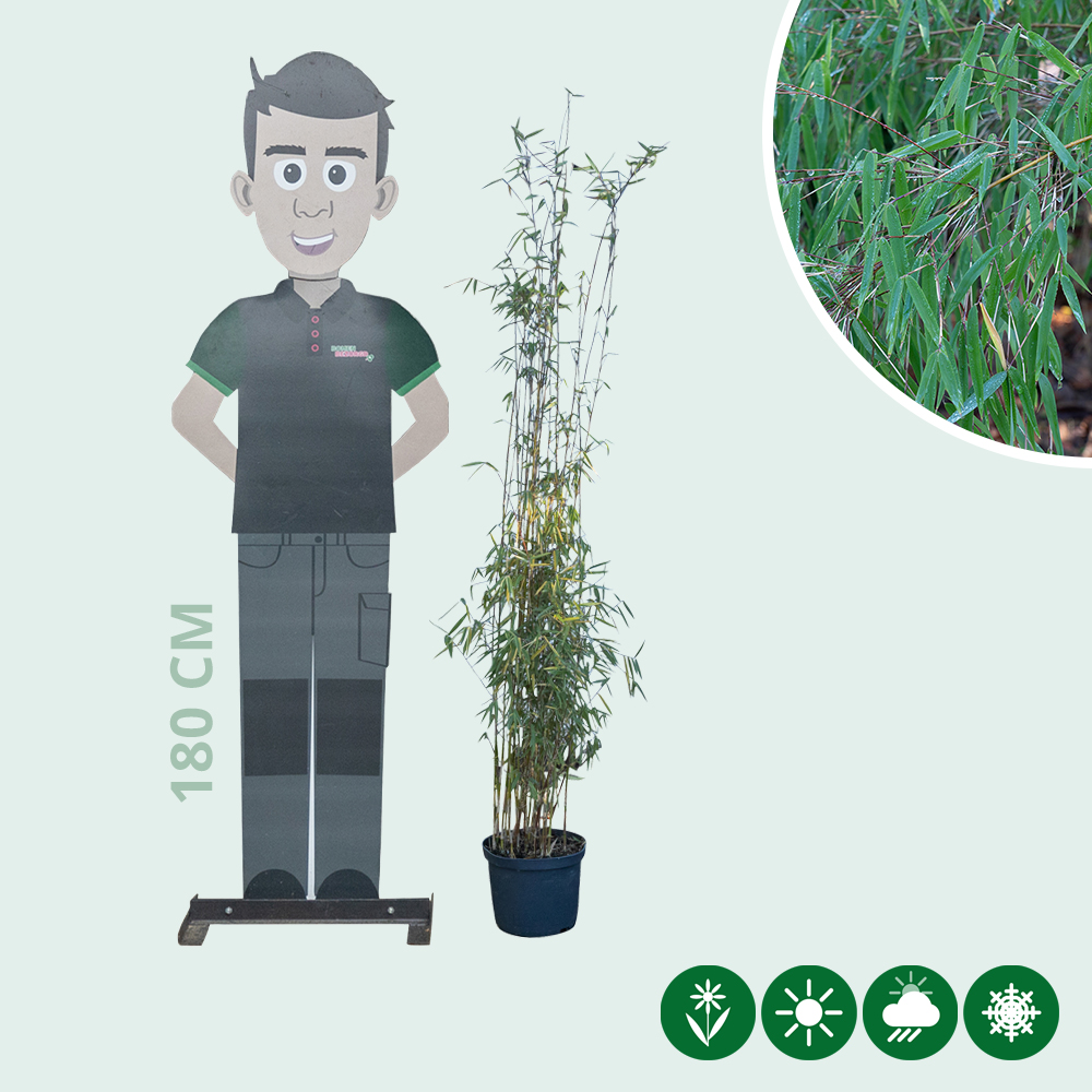 De niet woekerende bamboe Fargesia Jiuzhaigou heeft een totaalhoogte van 125 tot 150 centimeter.