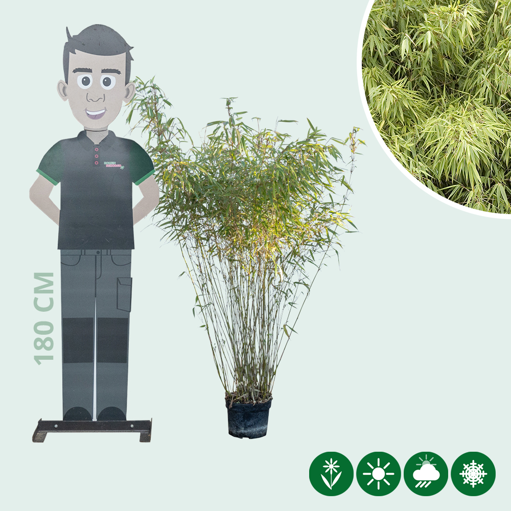 De niet woekerende bamboe Fargesia rufa heeft een totaalhoogte van 125 tot 150 centimeter.