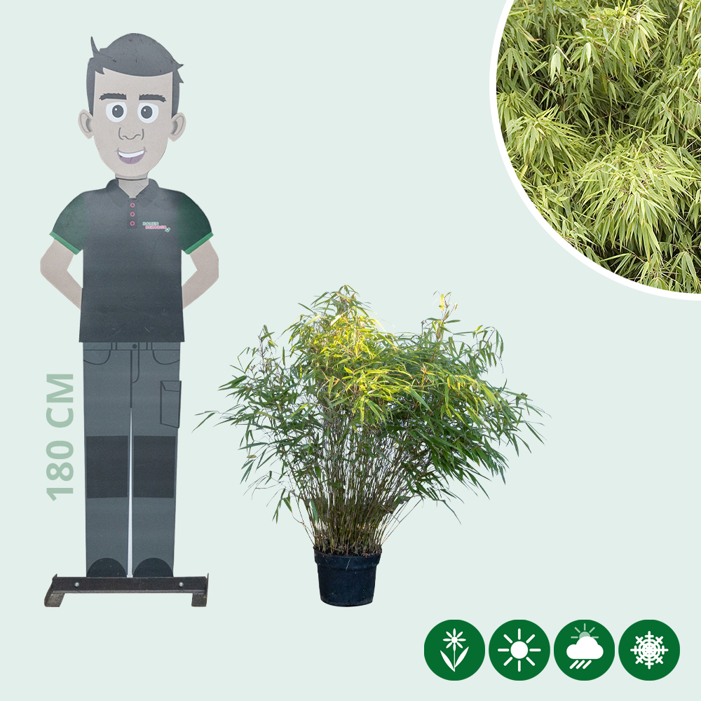 De niet woekerende bamboe Fargesia rufa heeft een totaalhoogte van 80 tot 100 centimeter.