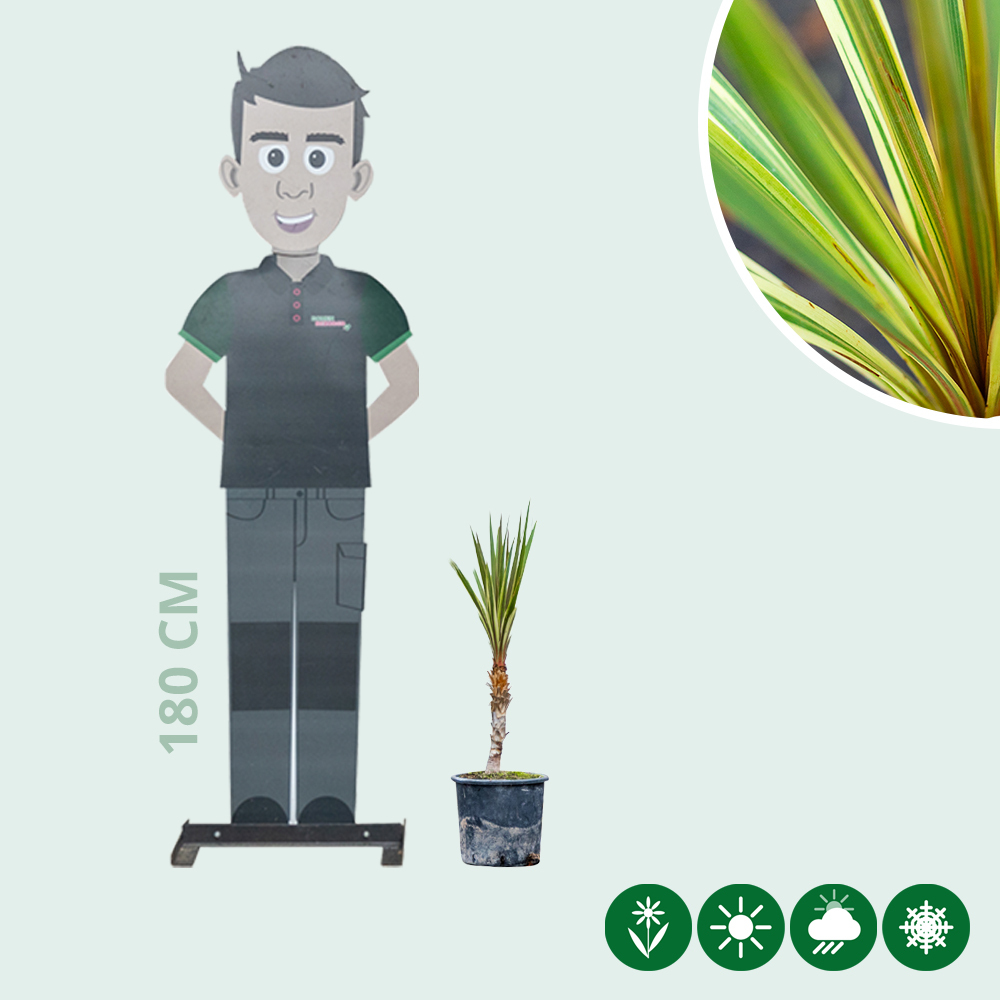 De Cordyline australis Torbay Dazzler is een opvallende koolpalm met een frisse en kleurrijke uitstraling. De plant staat bekend om zijn lange smalle bladeren die een prachtig patroon hebben van roomwit met groene strepen. De Torbay Dazzler is daarmee een van de meest bijzondere cordylines die je in Nederland kunt vinden.