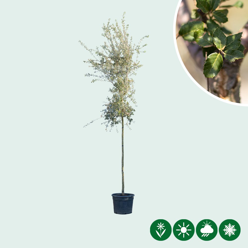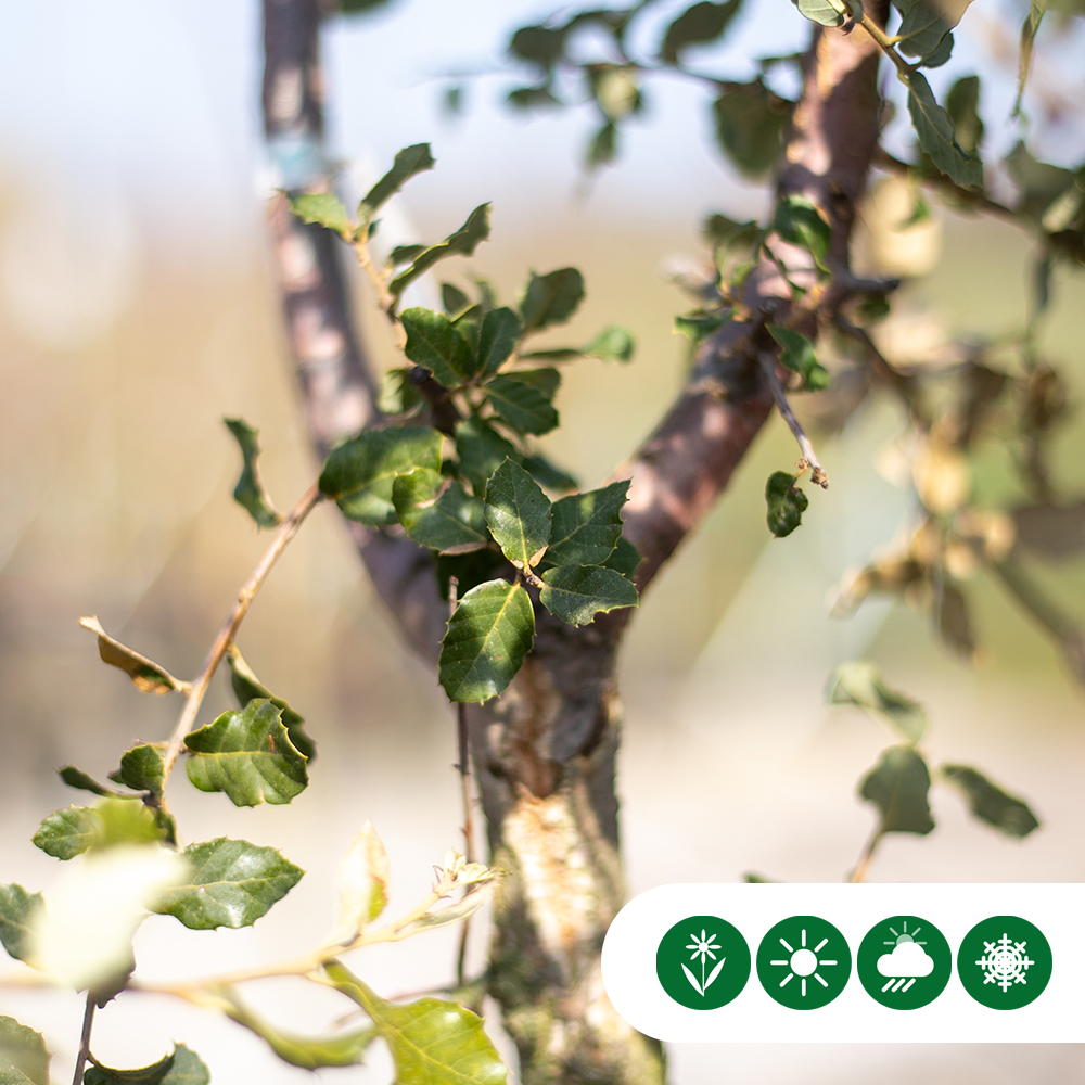Deze prachtige kurkeik groeit in Nederland het beste op een beschutte plek (uit de noord-oosten wind). Een goede bodem voor de Kurkeik is zandgrond of kalkrijke kleigrond. Kortom: Een romantische boom die jouw tuin een extra warme sfeer geeft!