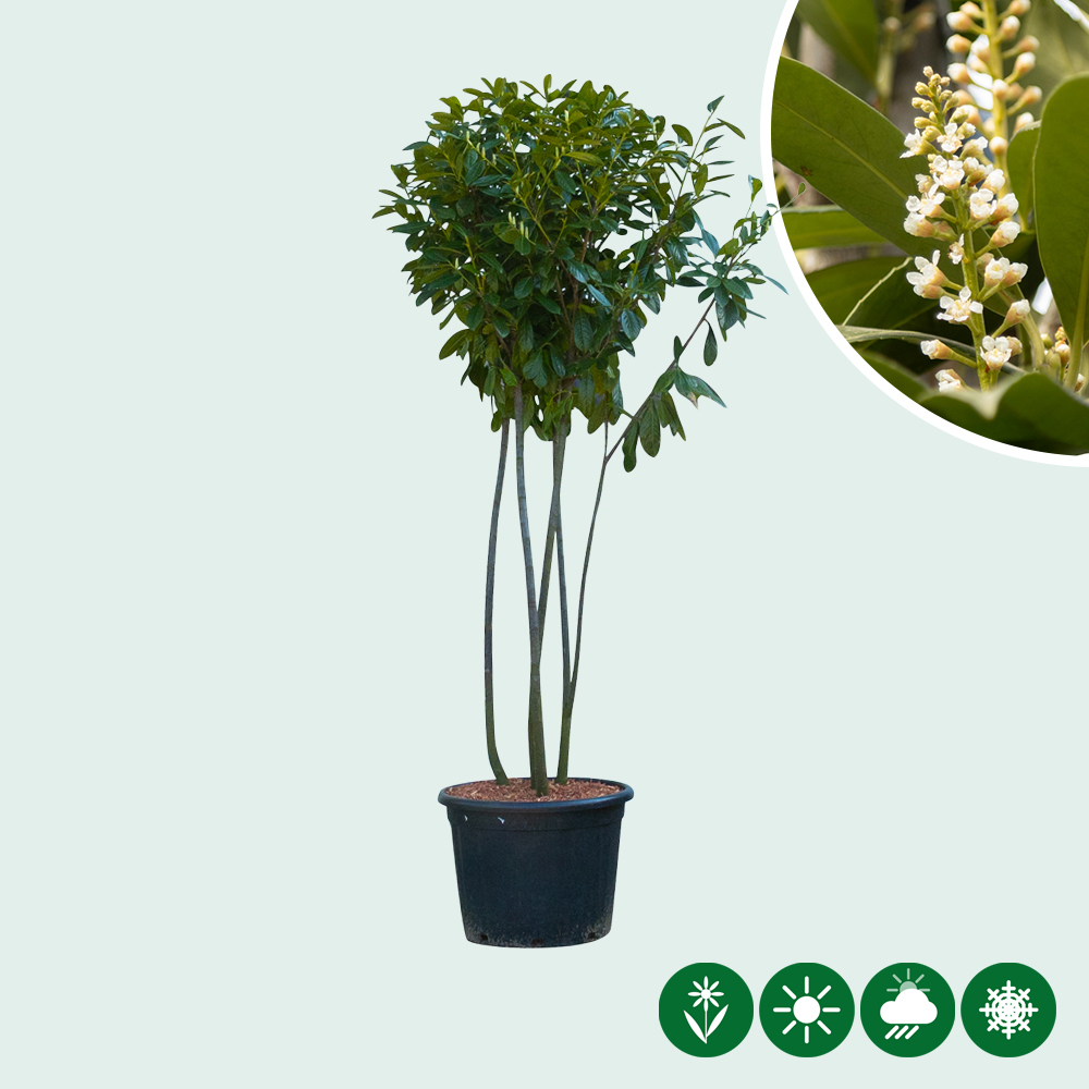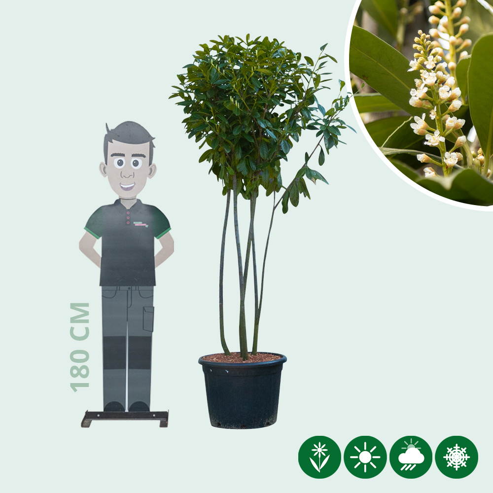 De meerstammige Laurierkers 'Novita' heeft een totaalhoogte van 250-350cm
