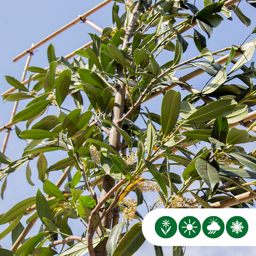 De leilaurier is een unieke leiboom, omdat deze boom in de winter groen blijft. Jaarrond heeft de Prunus laurocerasus 'Caucasica' blad dat groen blijft, daarom is deze groenblijvende boom ook zeer geschikt als schermvorm. Met de laurierkers als schermvorm ben je altijd gegarandeerd van privacy. Daarnaast heb je met de leilaurier ook een groene tuin in de winter.
