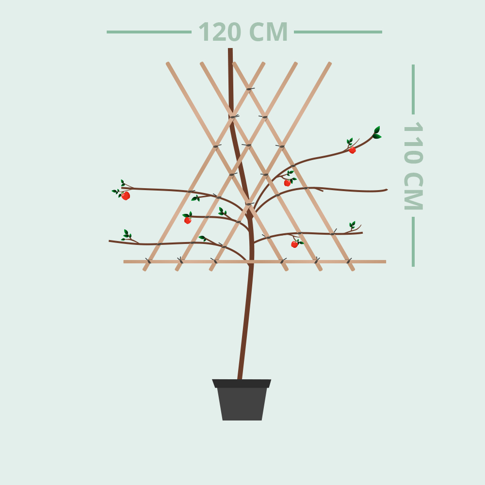 Dit is een laagstam leifruitboom en bij levering tussen 150 en 200 cm hoog.