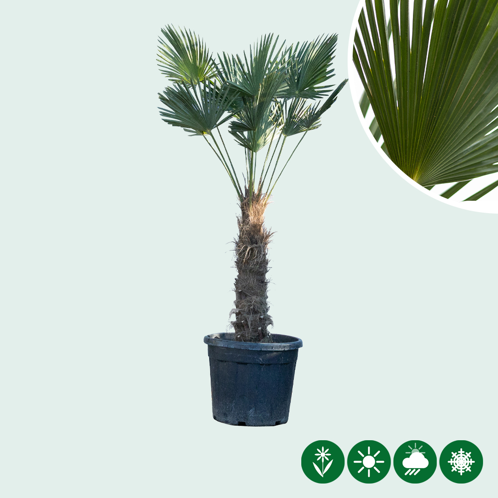 De wagnerpalm is een prachtige palmboom die donkergroen blad heeft. Het verschil tussen de Chinese waaierpalm en de wagnerpalm is dat de wagnerpalm donkerder blad heeft. Daarnaast is het blad van de wagnerpalm sterker dan de waaierpalm. De kroon van de wagnerpalm is dus sterker en voller. Deze palmboom kan temperaturen tot -16 graden Celsius verdragen. Het is dus een zeer winterharde palm.