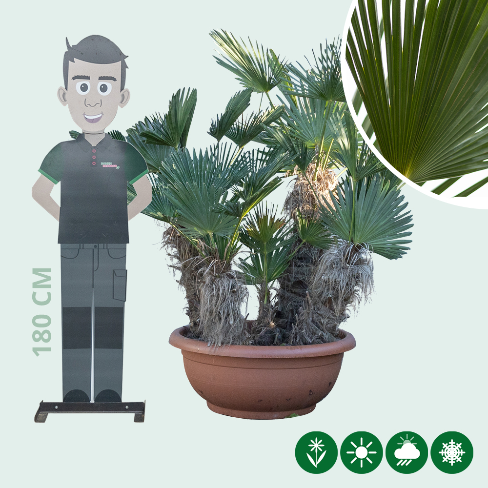 De wagnerpalm is een prachtige palmboom die donkergroen blad heeft. Het verschil tussen de Chinese waaierpalm en de wagnerpalm is dat de wagnerpalm donkerder blad heeft. Daarnaast is het blad van de wagnerpalm sterker dan de waaierpalm. De kroon van de wagnerpalm is dus sterker en voller. Deze palmboom kan temperaturen tot -16 graden Celsius verdragen. Het is dus een zeer winterharde palm.
